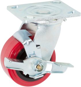 4 inch x 1.25 inch PLY Polyurethane Light Duty Industrial Non-Marking Top Plate Caster, 1 Swivel Top Lock Brake Caster, 280 LBS Load Capacity, RED (Single) – ICON 5000 Series
