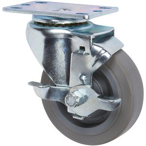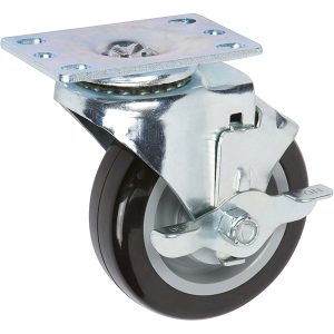 4 inch x 1.25 inch MIR Thermoplastic Rubber Light Duty Industrial Top Plate Caster, 1 Swivel Top Lock Brake Caster, 250 LBS Load Capacity, GRAY (Single) – ICON 5000 Series